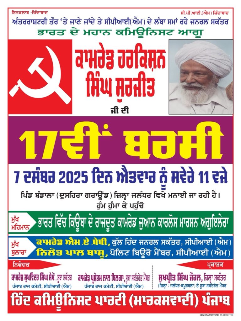 - ਸੀਪੀਆਈ (ਐਮ) ਦੀ ਸੂਬਾ ਸਕੱਤਰੇਤ ਮੀਟਿੰਗ ‘ਚ ਸਮੁੱਚੀ ਪਾਰਟੀ ਨੂੰ ਹੜ੍ਹ ਪੀੜਤਾਂ ਦੀ ਮਦਦ ਕਰਨ ਦਾ ਸੱਦਾ