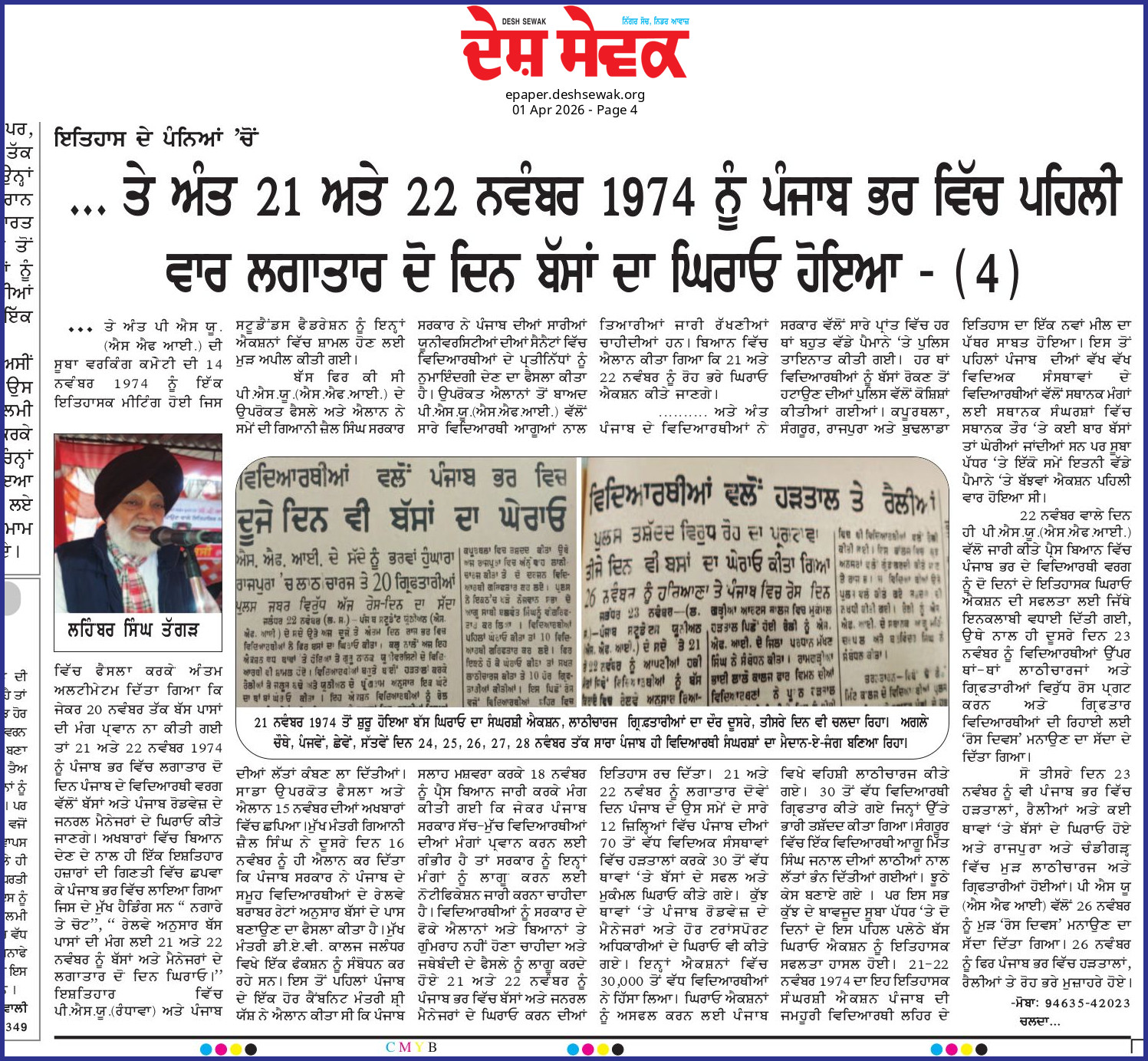 ਤੇ ਅੰਤ 21 ਅਤੇ 22 ਨਵੰਬਰ 1974 ਨੂੰ ਪੰਜਾਬ ਭਰ ਵਿੱਚ ਪਹਿਲੀ ਵਾਰ ਲਗਾਤਾਰ ਦੋ ਦਿਨ ਬੱਸਾਂ ਦਾ ਘਿਰਾਓ ਹੋਇਆ